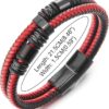 Väljenda oma stiili enesekindlalt. Kahekordne punutud nahast käevõru meestele ühendab klassikalise musta ja julge punase tooni modernsete roostevabast terasest detailidega, tuues kokku jõu, isikupära ja rafineeritud välimuse.